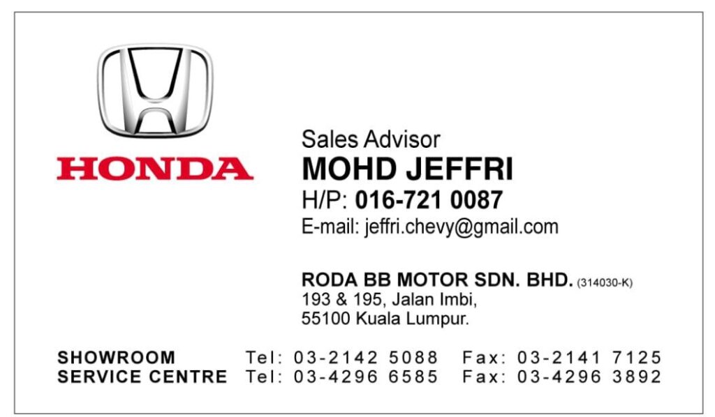 Penafian: Laman web ini dimiliki oleh Penasihat Jualan Honda yang sah dan berdaftar. Ia bukan laman web rasmi Honda Malaysia.